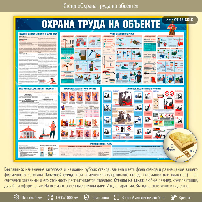Стенд «Охрана труда на объекте» (OT-43-GOLD) в Волгограде купить
