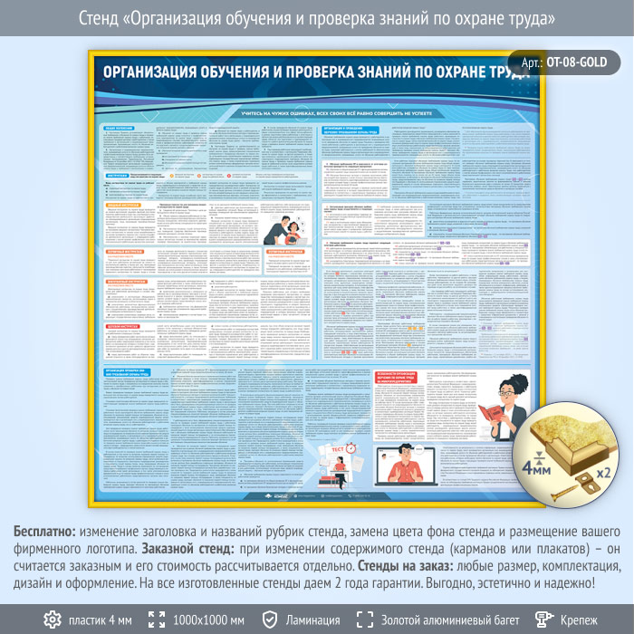 Стенд «Организация обучения и проверка знаний по охране труда» (OT-08-GOLD) в Волгограде купить