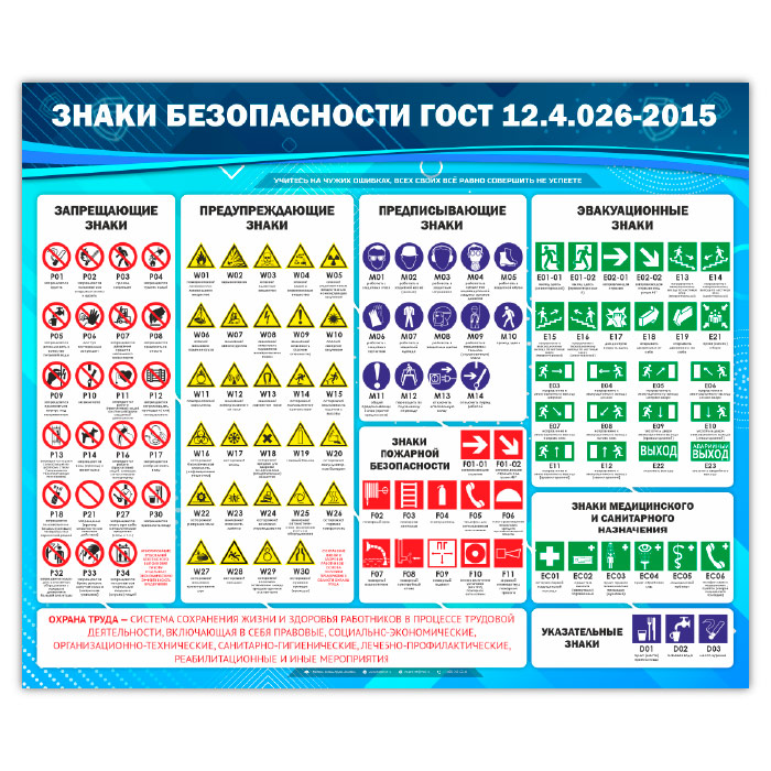 Стенд «Знаки безопасности ГОСТ 12.4.026-2015» (OT-09-GOLD) в Волгограде купить