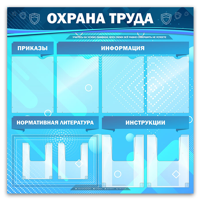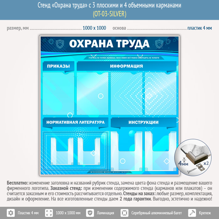Стенд «Охрана труда» с 4 плоскими и 4 объемными карманами (OT-03-SILVER) в Волгограде купить
