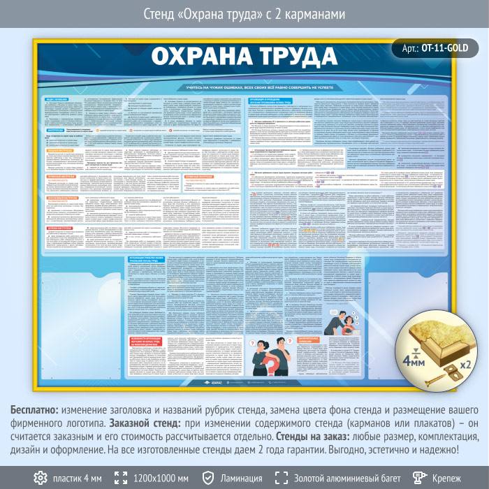 Стенд «Охрана труда» с 2 карманами (OT-11-GOLD) в Волгограде купить