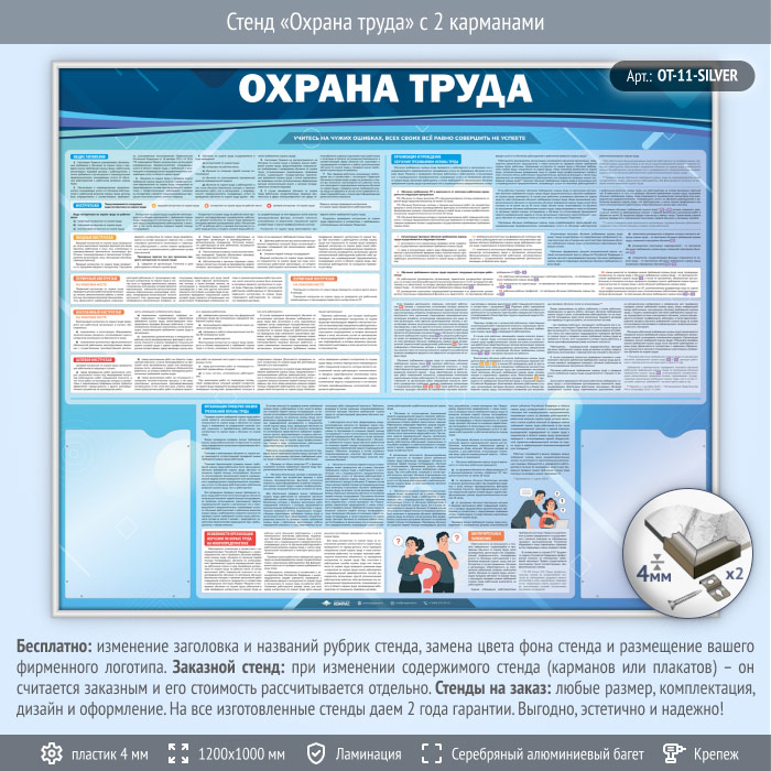 Стенд «Охрана труда» с 2 карманами (OT-11-SILVER) в Волгограде купить