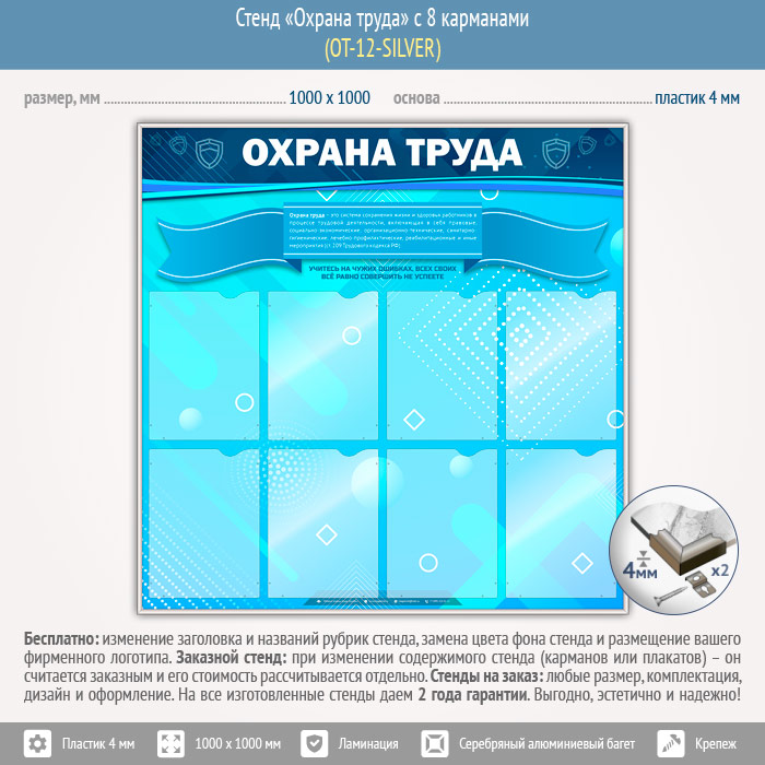 Стенд «Охрана труда» с 8 карманами (OT-12-SILVER) в Волгограде купить