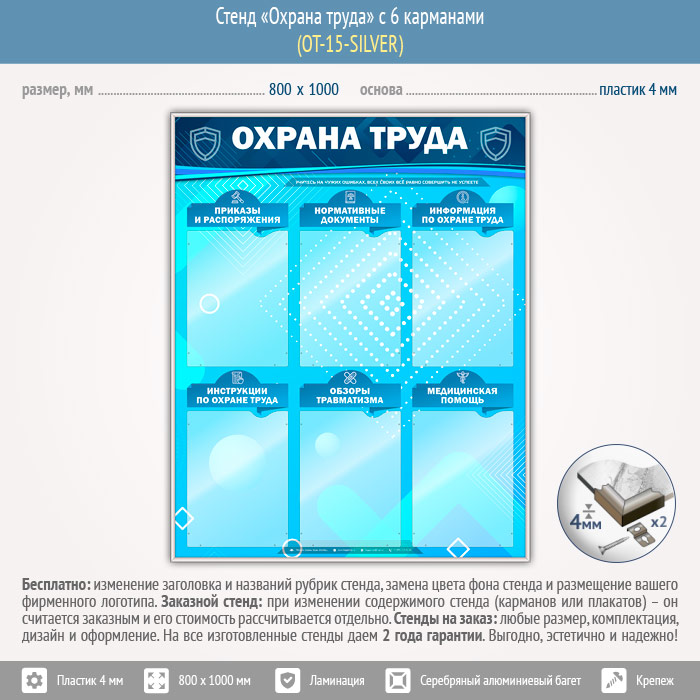 Стенд «Охрана труда» с 6 карманами (OT-15-SILVER) в Волгограде купить