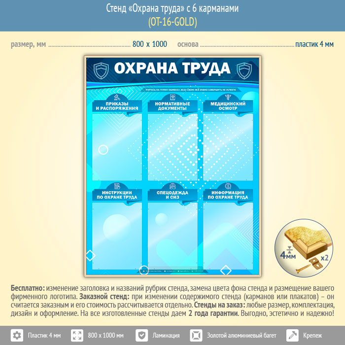 Стенд «Охрана труда» с 6 карманами (OT-16-GOLD) в Волгограде купить