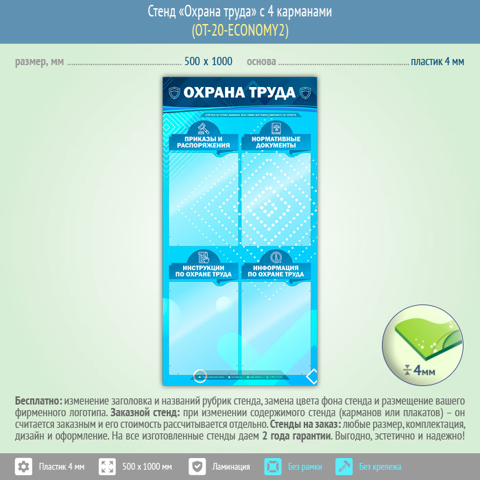 Стенд «Охрана труда» с 4 карманами (OT-20-ECONOMY2) в Волгограде купить