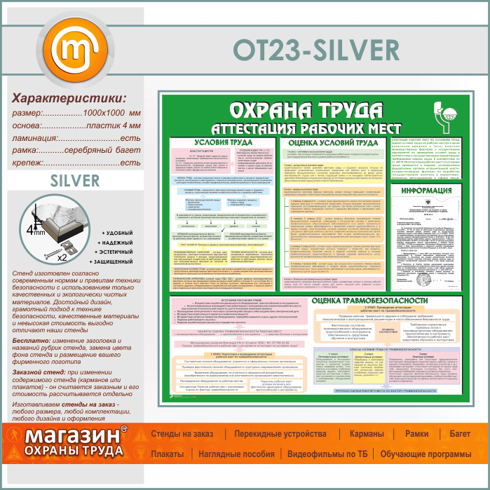 Стенд «Охрана труда. Аттестация рабочих мест» с карманом (OT-23-SILVER) в Волгограде купить