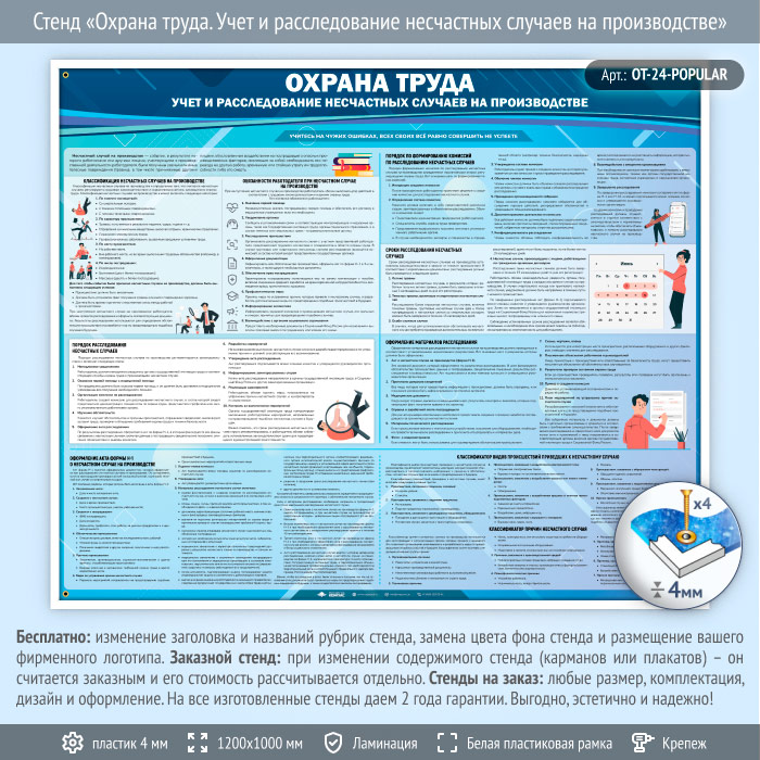 Стенд «Охрана труда. Учет и расследование несчастных случаев на производстве» (OT-24-POPULAR) в Волгограде купить