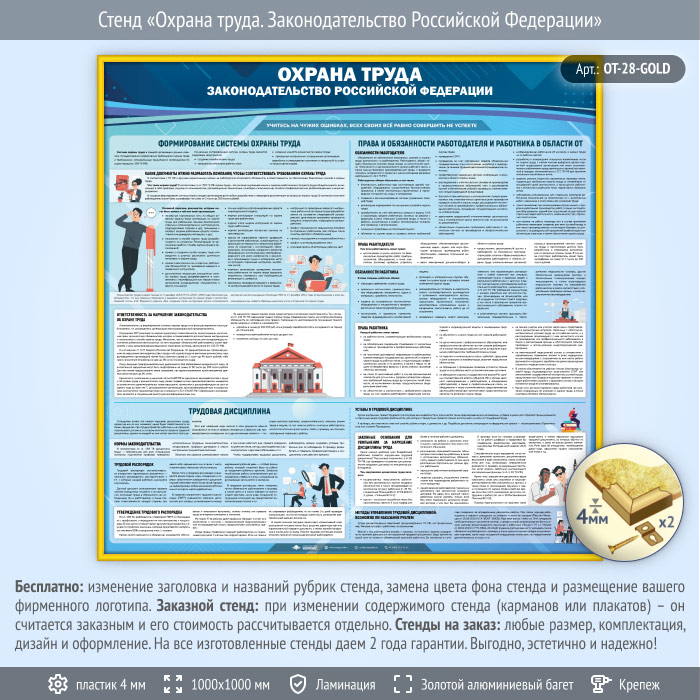 Стенд «Охрана труда. Законодательство Российской Федерации» (OT-28-GOLD) в Волгограде купить