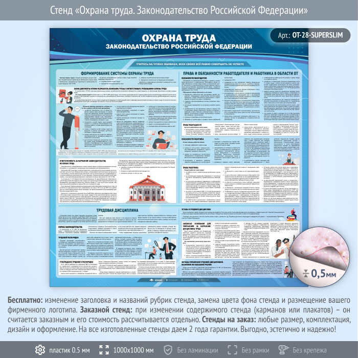 Стенд «Охрана труда. Законодательство Российской Федерации» (OT-28-SUPERSLIM) в Волгограде купить