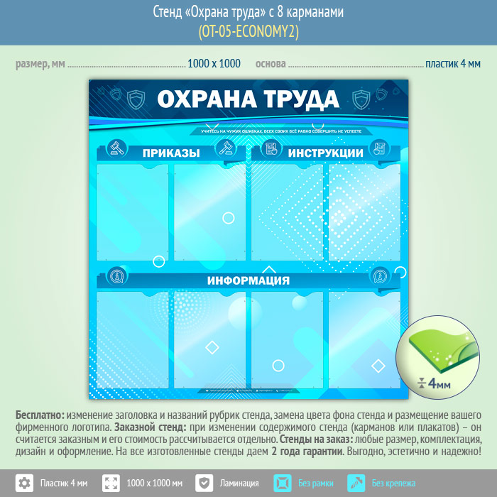 Стенд «Охрана труда» с 8 карманами (OT-05-ECONOMY2) в Волгограде купить