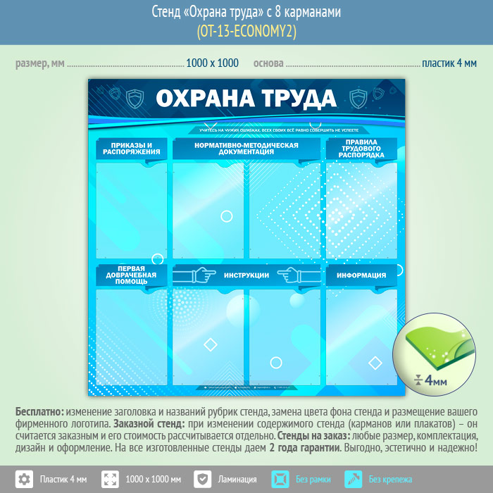 Стенд «Охрана труда» с 8 карманами (OT-13-ECONOMY2) в Волгограде купить