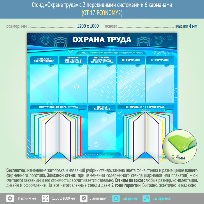 Стенд «Охрана труда» с 2 перекидными системами и 6 карманами (OT-17-ECONOMY2) в Волгограде купить