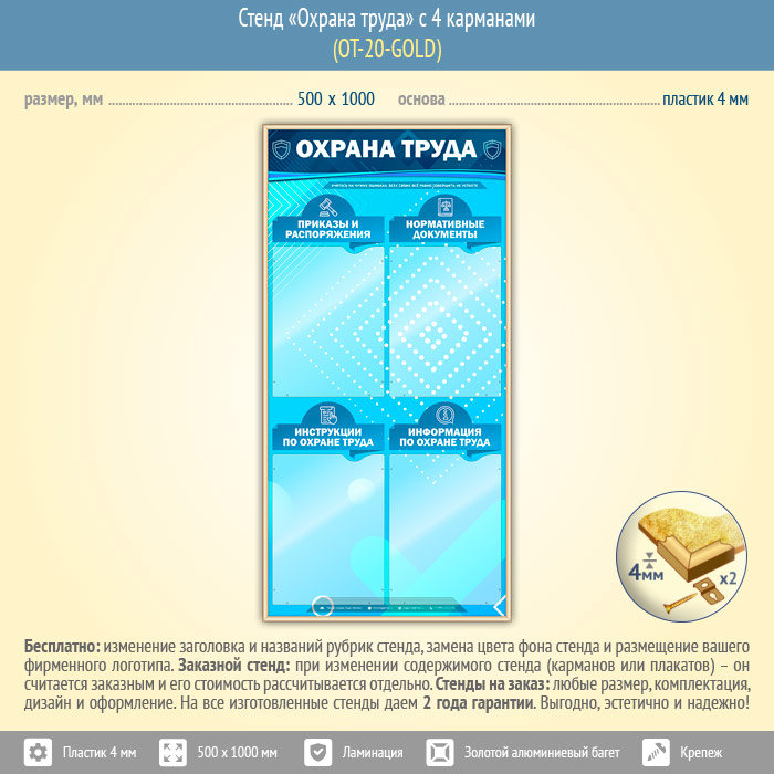 Стенд «Охрана труда» с 4 карманами (OT-20-GOLD) в Волгограде купить