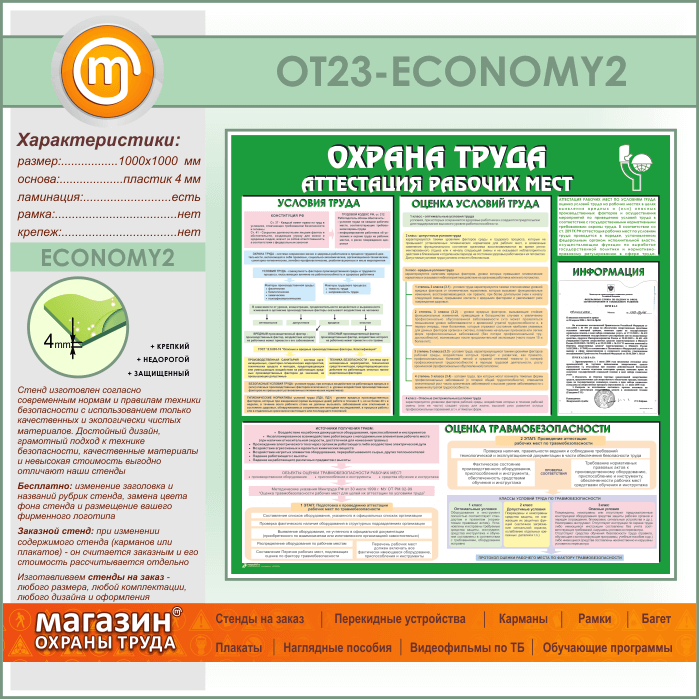 Стенд «Охрана труда. Аттестация рабочих мест» с карманом (OT-23-ECONOMY2) в Волгограде купить