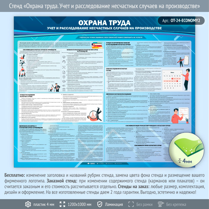 Стенд «Охрана труда. Учет и расследование несчастных случаев на производстве» (OT-24-ECONOMY2) в Волгограде купить
