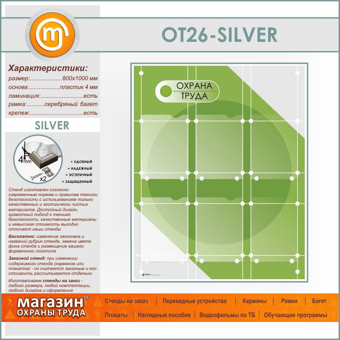 Стенд «Охрана труда» с 6 плоскими карманами (OT-26-SILVER) в Волгограде купить