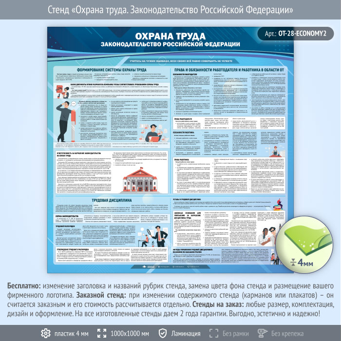 Стенд «Охрана труда. Законодательство Российской Федерации» (OT-28-ECONOMY2) в Волгограде купить