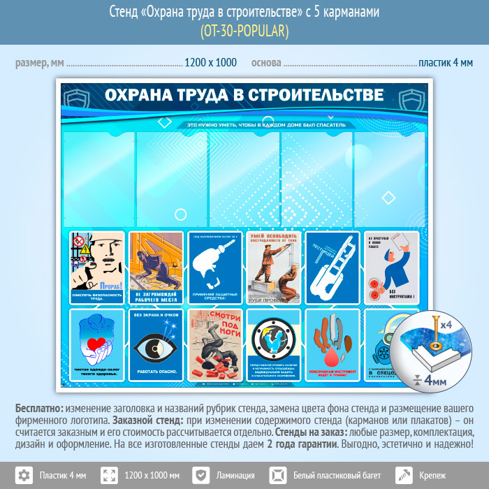Стенд «Охрана труда в строительстве» с 5 карманами (OT-30-POPULAR) в Волгограде купить