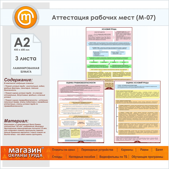 Плакаты «Аттестация рабочих мест» (М-07, ламинированная бумага, А2, 3 листа) в Волгограде купить