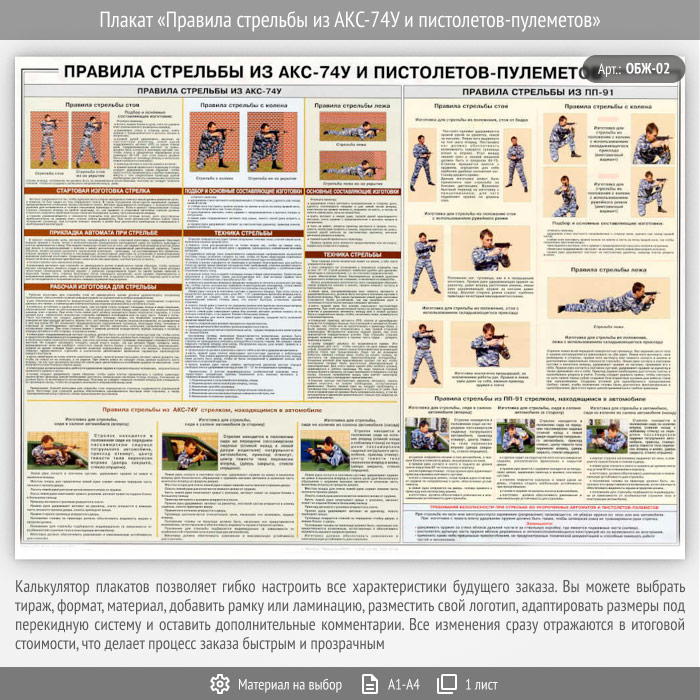 Плакат «Правила стрельбы из АКС-74У и пистолетов-пулеметов» (ОБЖ-02, 1 лист) в Волгограде купить