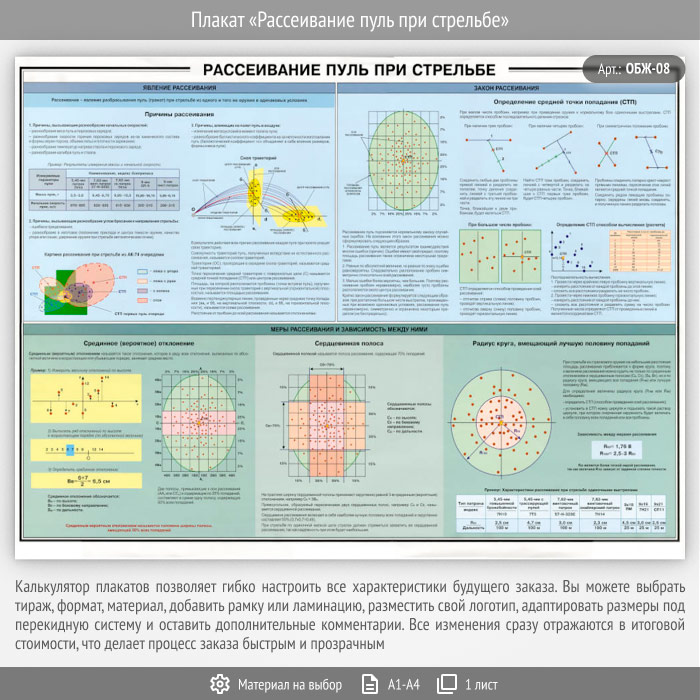 Плакат «Рассеивание пуль при стрельбе» (ОБЖ-08, 1 лист) в Волгограде купить