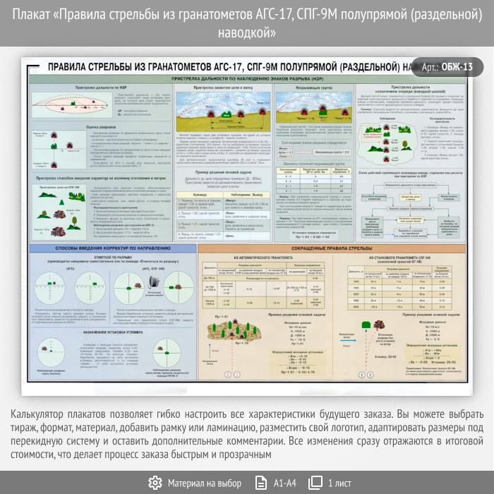 Плакат «Правила стрельбы из гранатометов АГС-17, СПГ-9М полупрямой (раздельной) наводкой» (ОБЖ-13, 1 лист) в Волгограде купить
