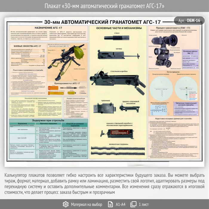 Плакат «30-мм автоматический гранатомет АГС-17» (ОБЖ-16, 1 лист) в Волгограде купить
