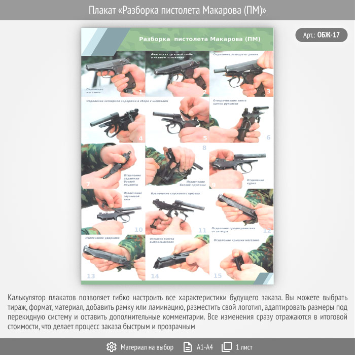 Плакат «Разборка пистолета Макарова (ПМ)» (ОБЖ-17, 1 лист) в Волгограде купить