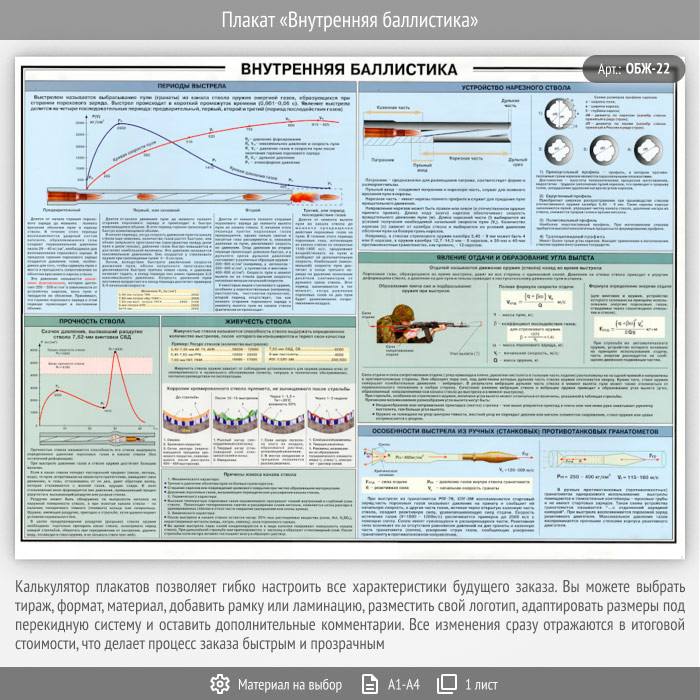 Плакат «Внутренняя баллистика» (ОБЖ-22, 1 лист) в Волгограде купить