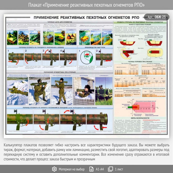 Плакат «Применение реактивных пехотных огнеметов РПО» (ОБЖ-23, 1 лист) в Волгограде купить