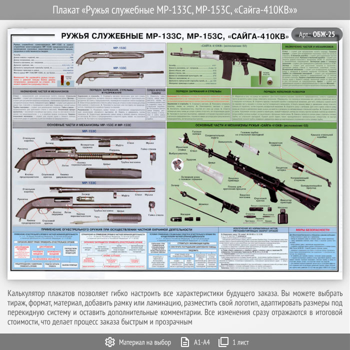 Плакат «Ружья служебные МР-133С, МР-153С, «Сайга-410КВ»» (ОБЖ-25, 1 лист) в Волгограде купить