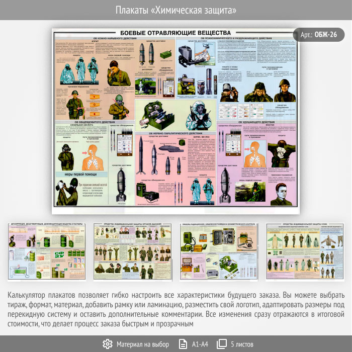 Плакаты «Химическая защита» (ОБЖ-26, 5 листа) в Волгограде купить