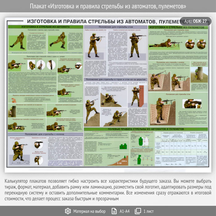 Плакат «Изготовка и правила стрельбы из автоматов, пулеметов» (ОБЖ-27, 1 лист) в Волгограде купить