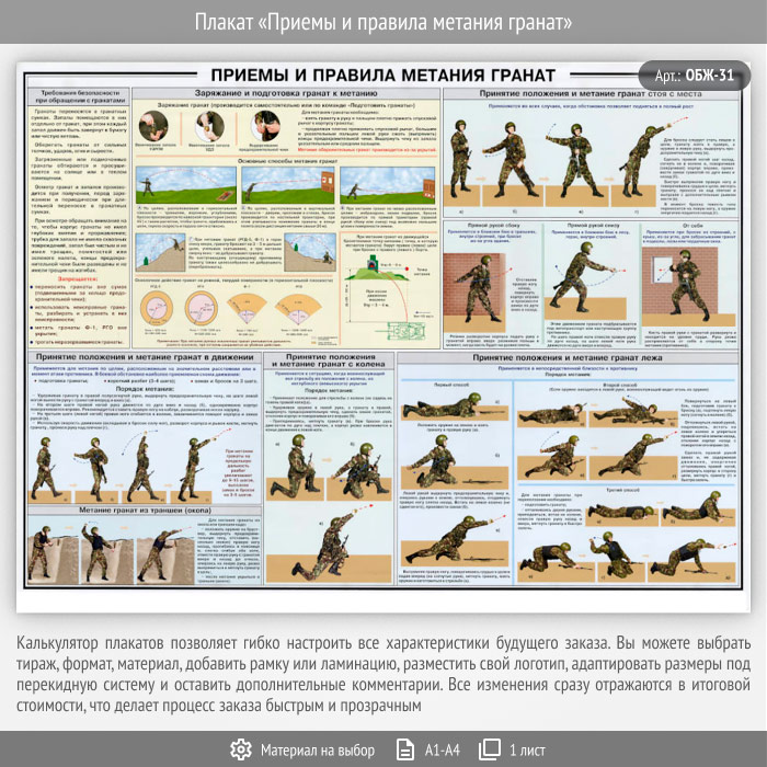 Плакат «Приемы и правила метания гранат» (ОБЖ-31, 1 лист) в Волгограде купить