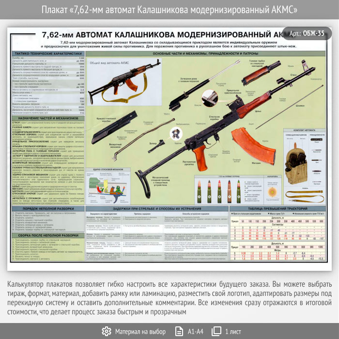 Плакат «7,62-мм автомат Калашникова модернизированный АКМС» (ОБЖ-35, 1 лист) в Волгограде купить