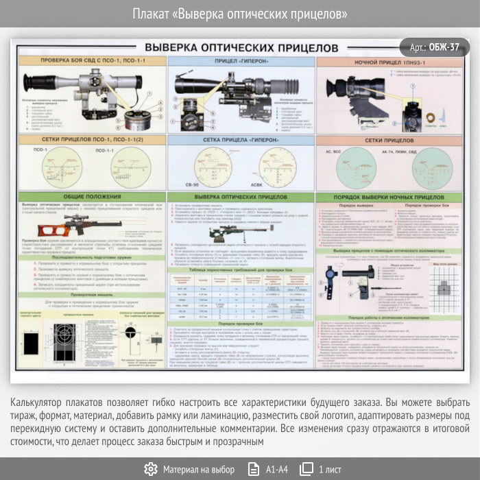 Плакат «Выверка оптических прицелов» (ОБЖ-37, 1 лист) в Волгограде купить