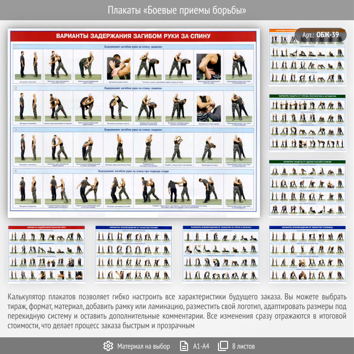 Плакаты «Боевые приемы борьбы» (ОБЖ-39, 8 листа) в Волгограде купить