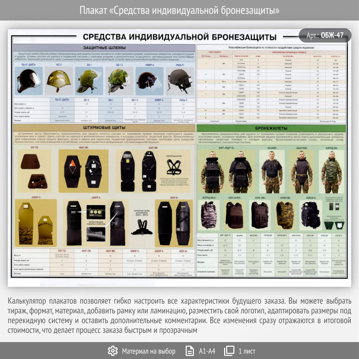 Плакат «Средства индивидуальной бронезащиты» (ОБЖ-47, 1 лист) в Волгограде купить