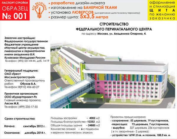 Паспорт стройки, образец № 1 (баннерная ткань, 5000х3500 cм) в Волгограде купить