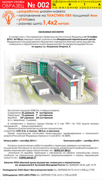 Паспорт стройки, образец № 2 (пластик 4 мм, 1400х2000 cм) в Волгограде купить