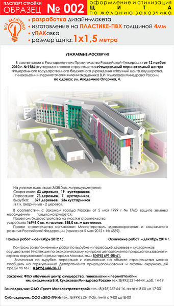 Паспорт стройки, образец № 2 (пластик 4 мм, 1000х1500 cм) в Волгограде купить