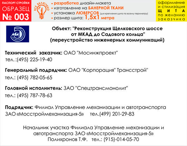 Паспорт стройки, образец № 3 (баннерная ткань, 1500х1000 cм) в Волгограде купить