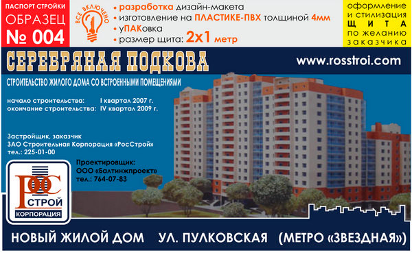 Паспорт стройки, образец № 4 (пластик 4 мм, 2000х1000 cм) в Волгограде купить