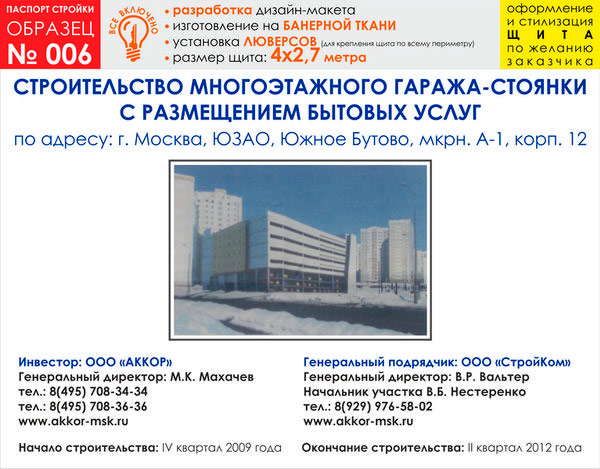 Паспорт стройки, образец № 6 (баннерная ткань, 4000х2700 cм) в Волгограде купить