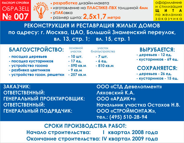 Паспорт стройки, образец № 7 (пластик 4 мм, 2500х1700 cм) в Волгограде купить