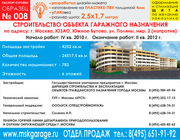Паспорт стройки, образец № 8 (пластик 4 мм, 2500х1700 cм) в Волгограде купить