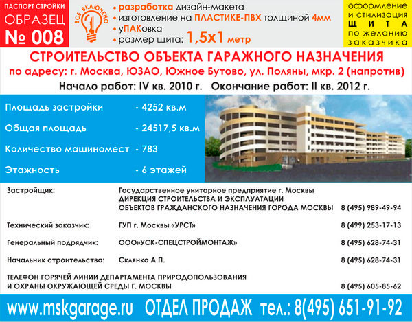 Паспорт стройки, образец № 8 (пластик 4 мм, 1500х1000 cм) в Волгограде купить