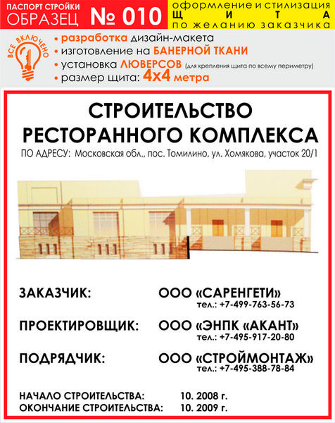 Паспорт стройки, образец № 10 (баннерная ткань, 4000х4000 cм) в Волгограде купить