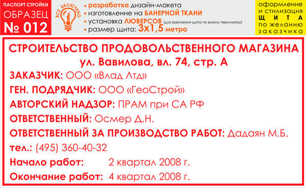 Паспорт стройки, образец № 12 (баннерная ткань, 3000х1500 cм) в Волгограде купить
